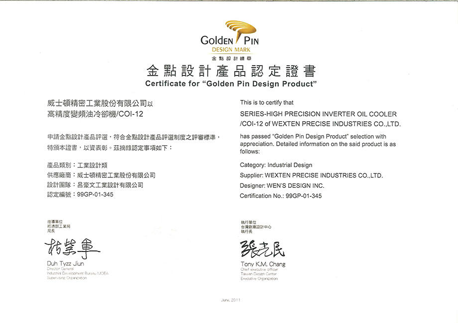 1. 2008年12月97年荣获台中县绩优厂商金手奖